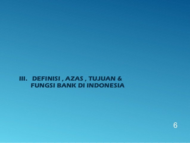- 6. III. DEFINISI , AZAS , TUJUAN & FUNGSI BANK DI INDONESIA 6